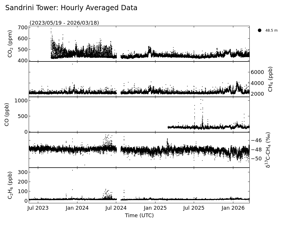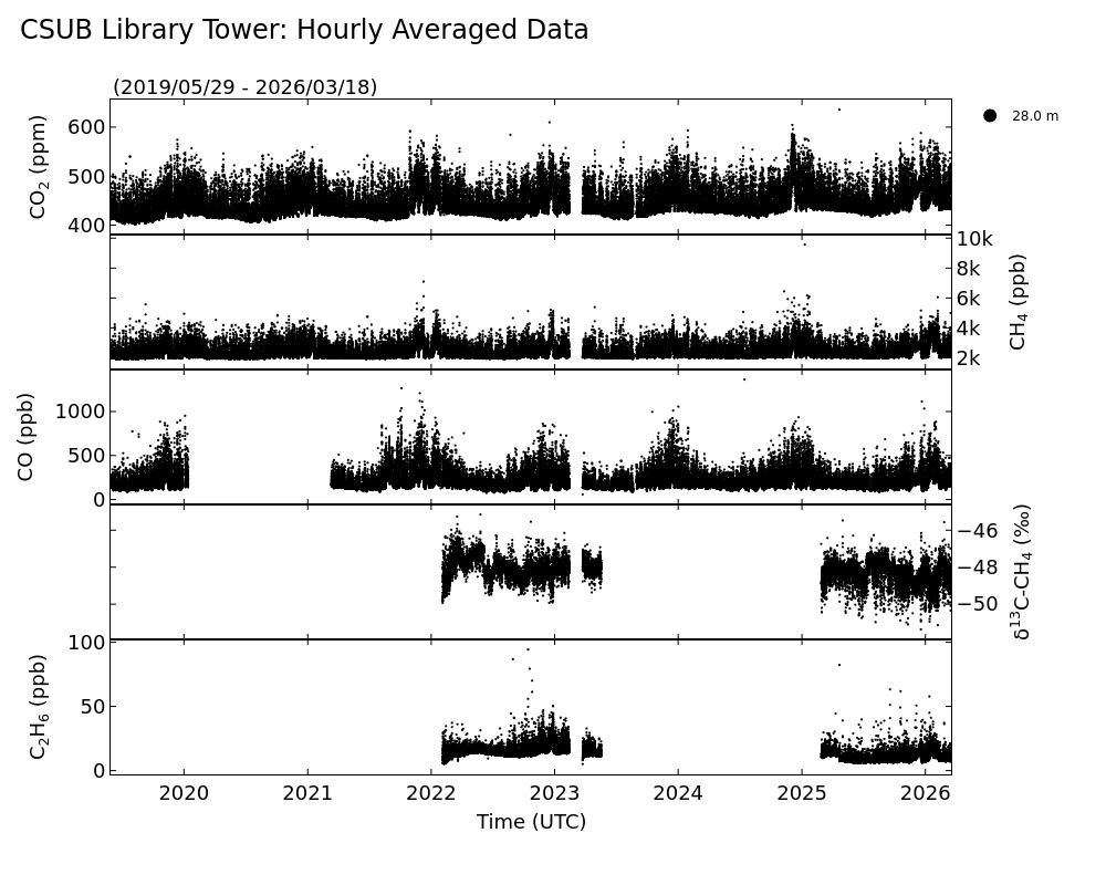 We are collecting continuous observations of methane, ethane concentrations, and methane isotopic ratio from tall towers to estimate regionally aggregated and spatially resolved (3-4 km grid) methane fluxes. This monitoring network will include four new sites on existing television or radio transmitter towers located in the Southern San Joaquin Valley.